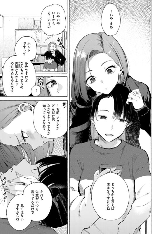「ほら アタシSじゃんか」SEXは攻められるより攻める方が好き!ドSな女子大生・風北(かぜきた)さんは今回の彼氏とも性の不一致で即破局。ある日、ひょんなことからサークルの後輩のナヨ系男子・大洋(たいよう)とどっちがSか《SEX》で勝負することに。ソッコーわからせてやるつもりが、ねちっこい前戯に焦らされイカされ、目隠しをされた挙句、自らチ○ポをおねだりする始末に……!?